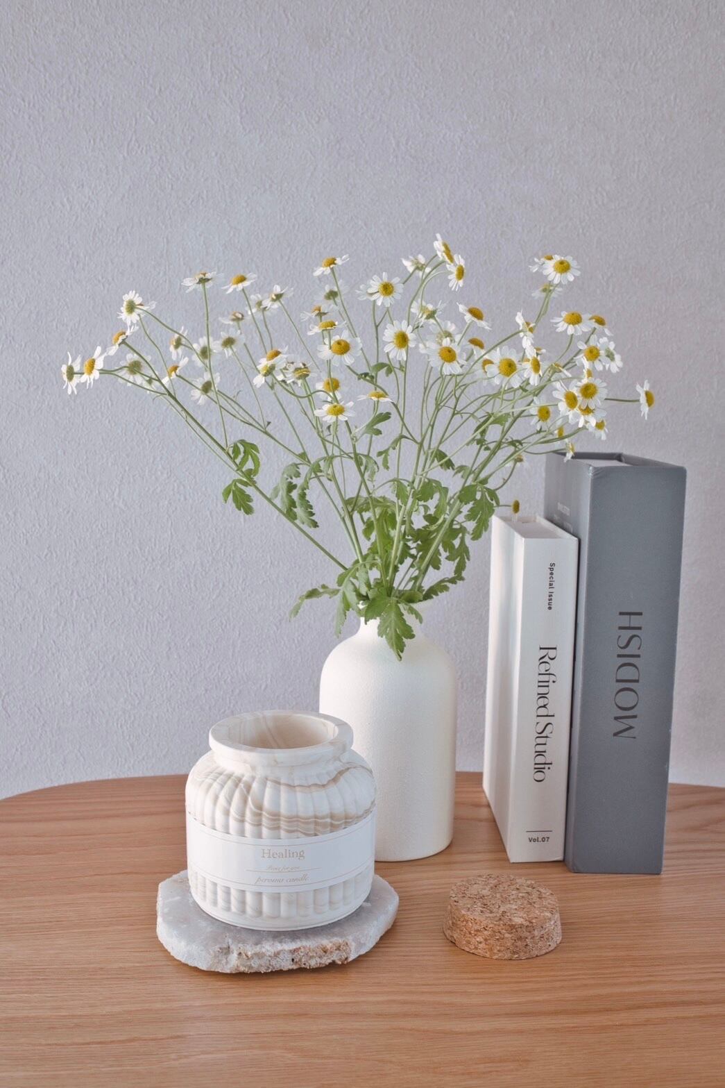 エアコンなどの風が当たらない平らな場所に置いてください。エアコンなどの風が当たるとキャンドルの燃え方が不均一になったりロウの消費を早めてしまったりします。