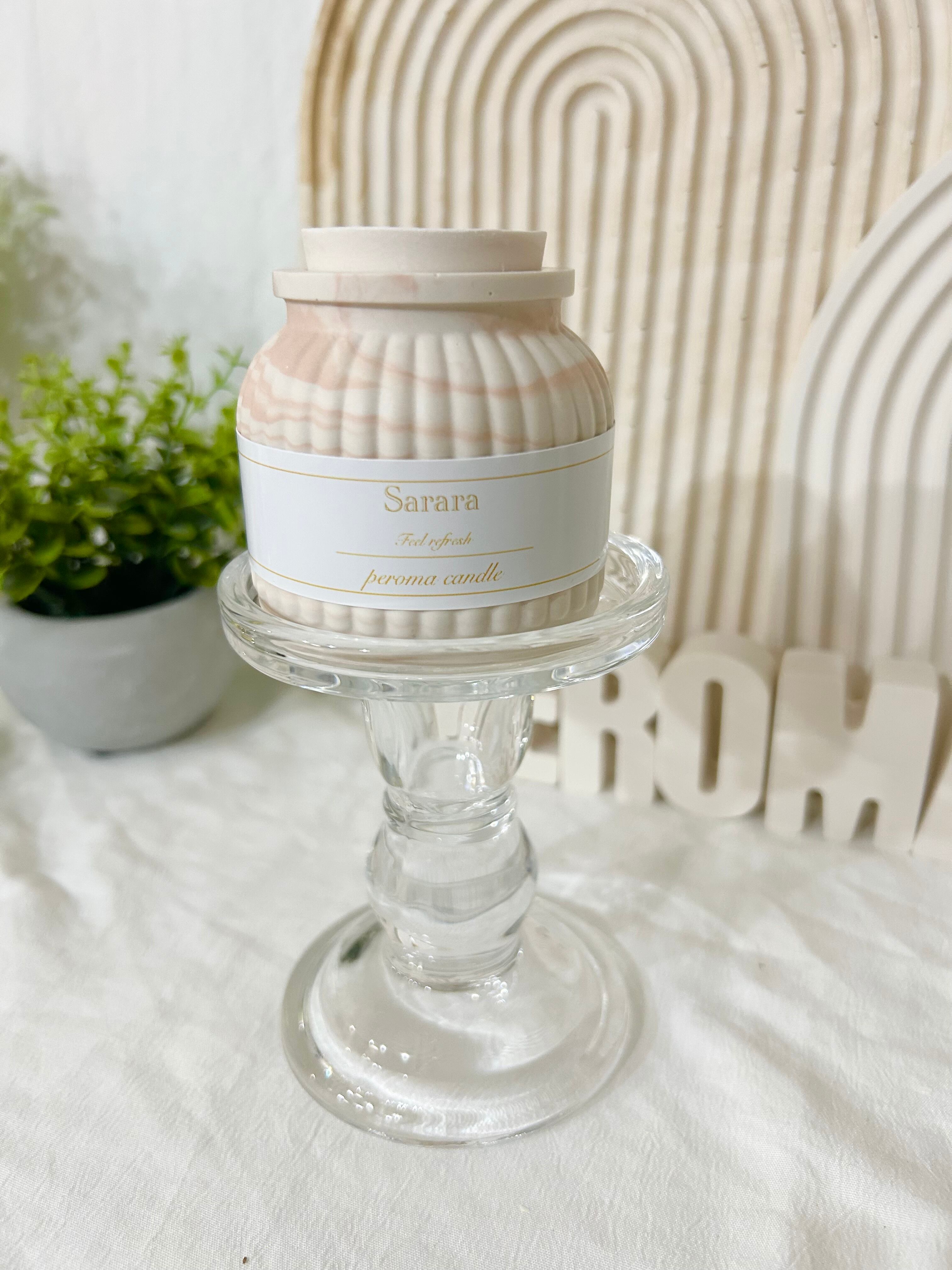 エアコンなどの風が当たらない平らな場所に置いてください。エアコンなどの風が当たるとキャンドルの燃え方が不均一になったりロウの消費を早めてしまったりします。